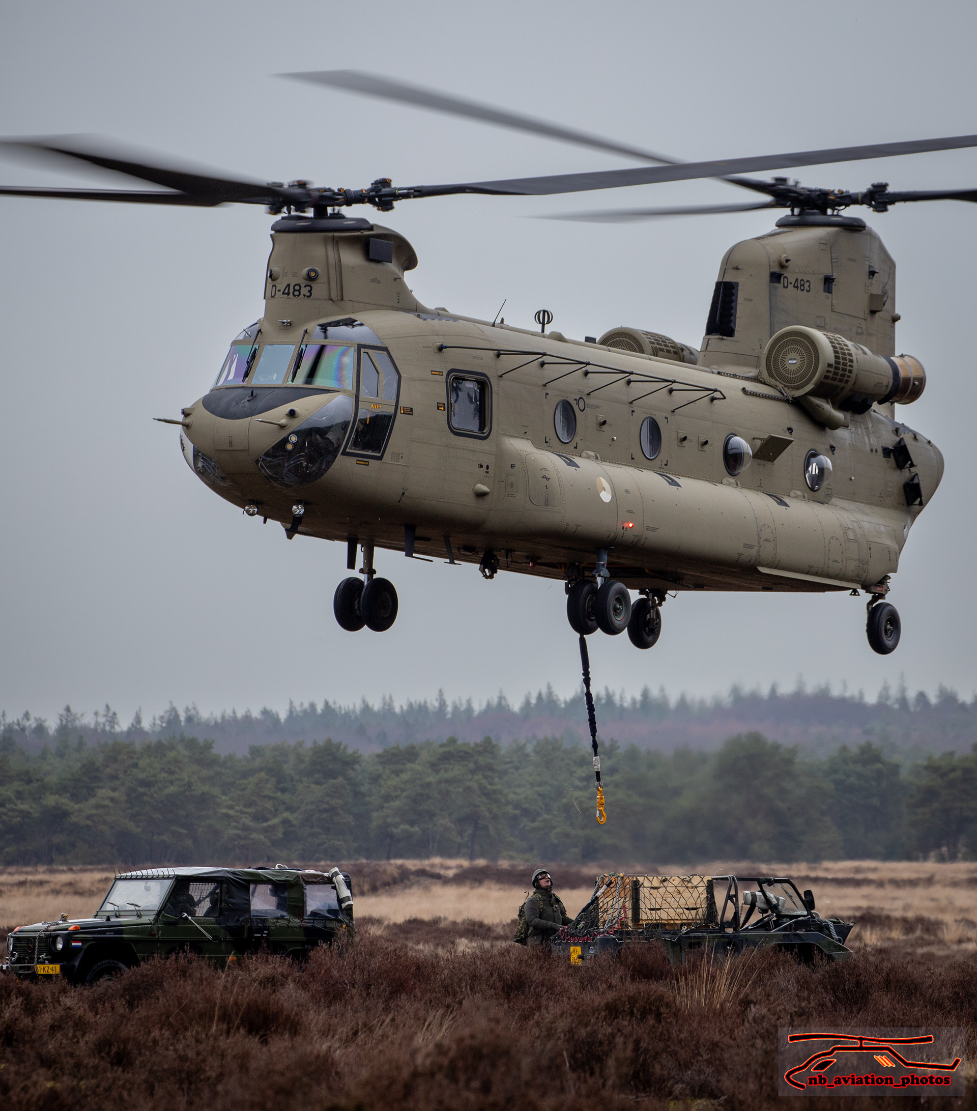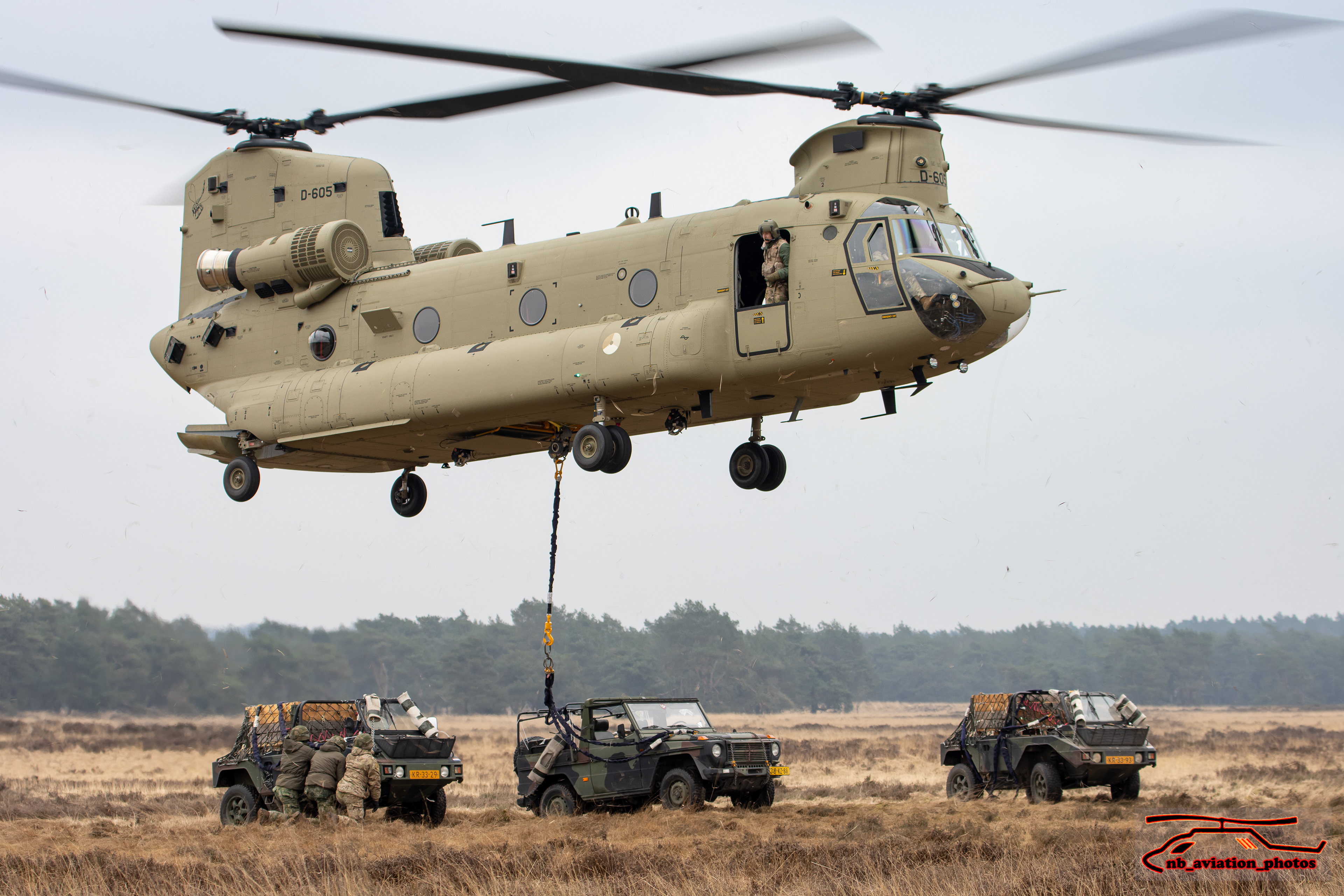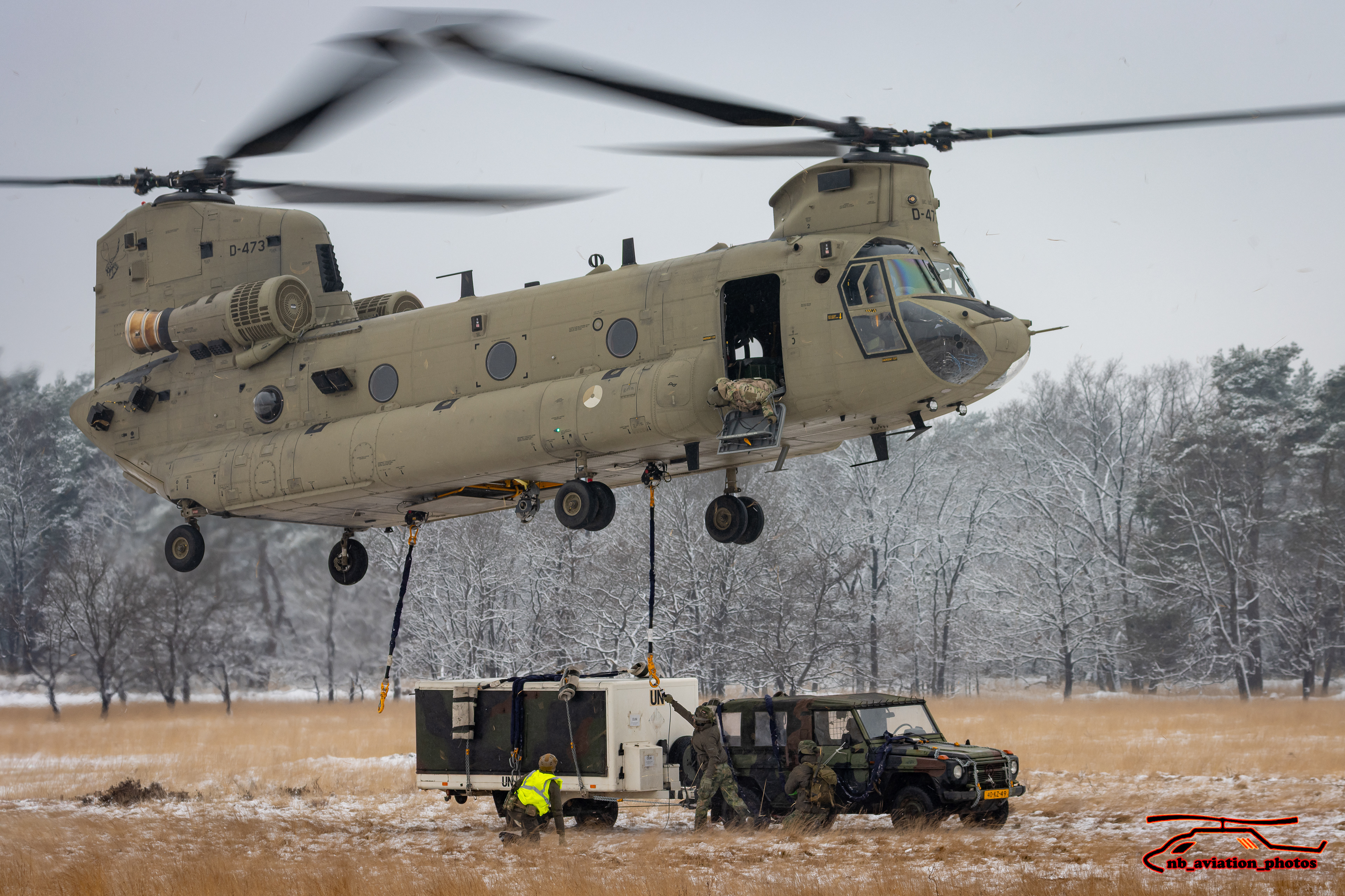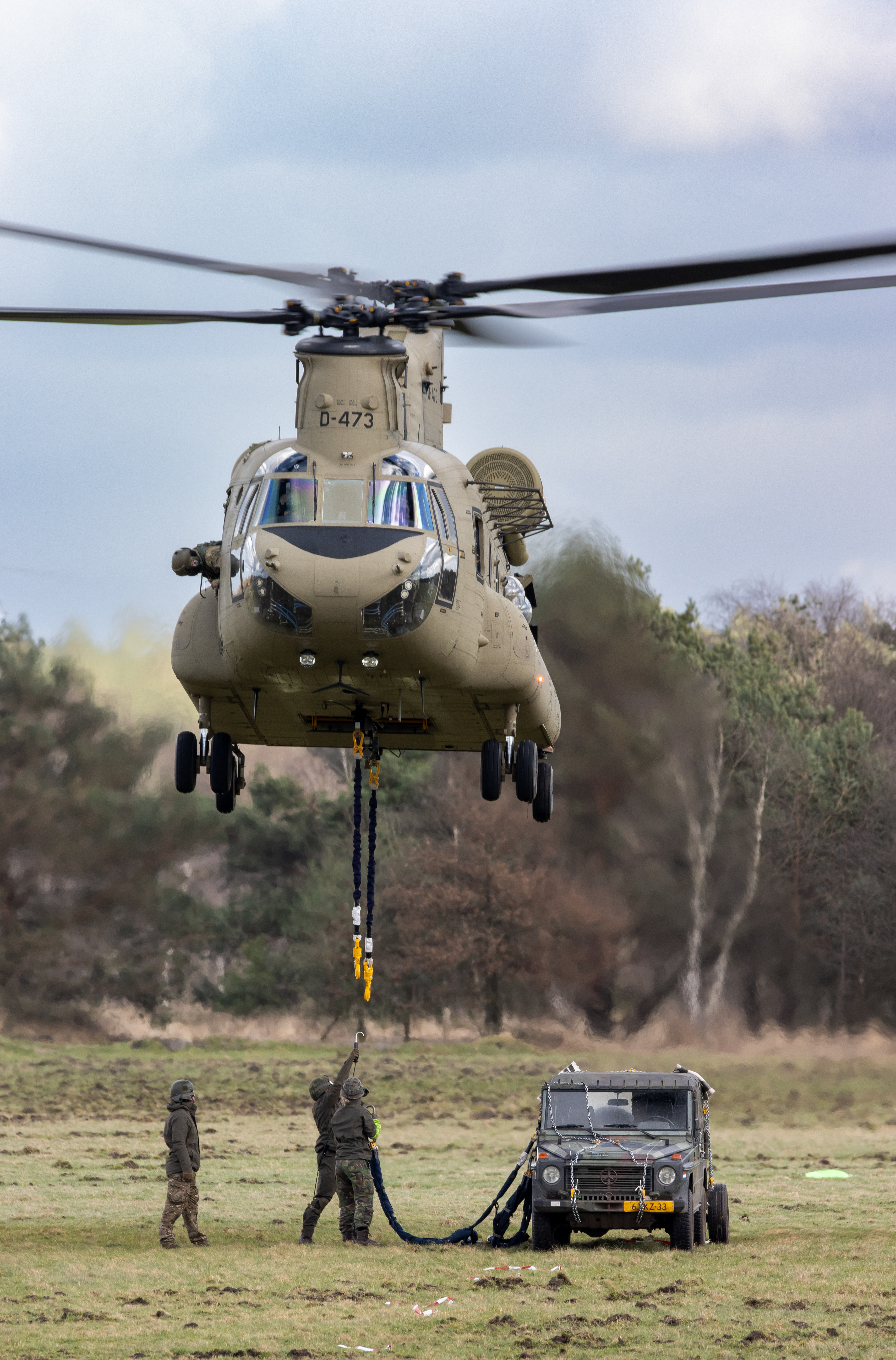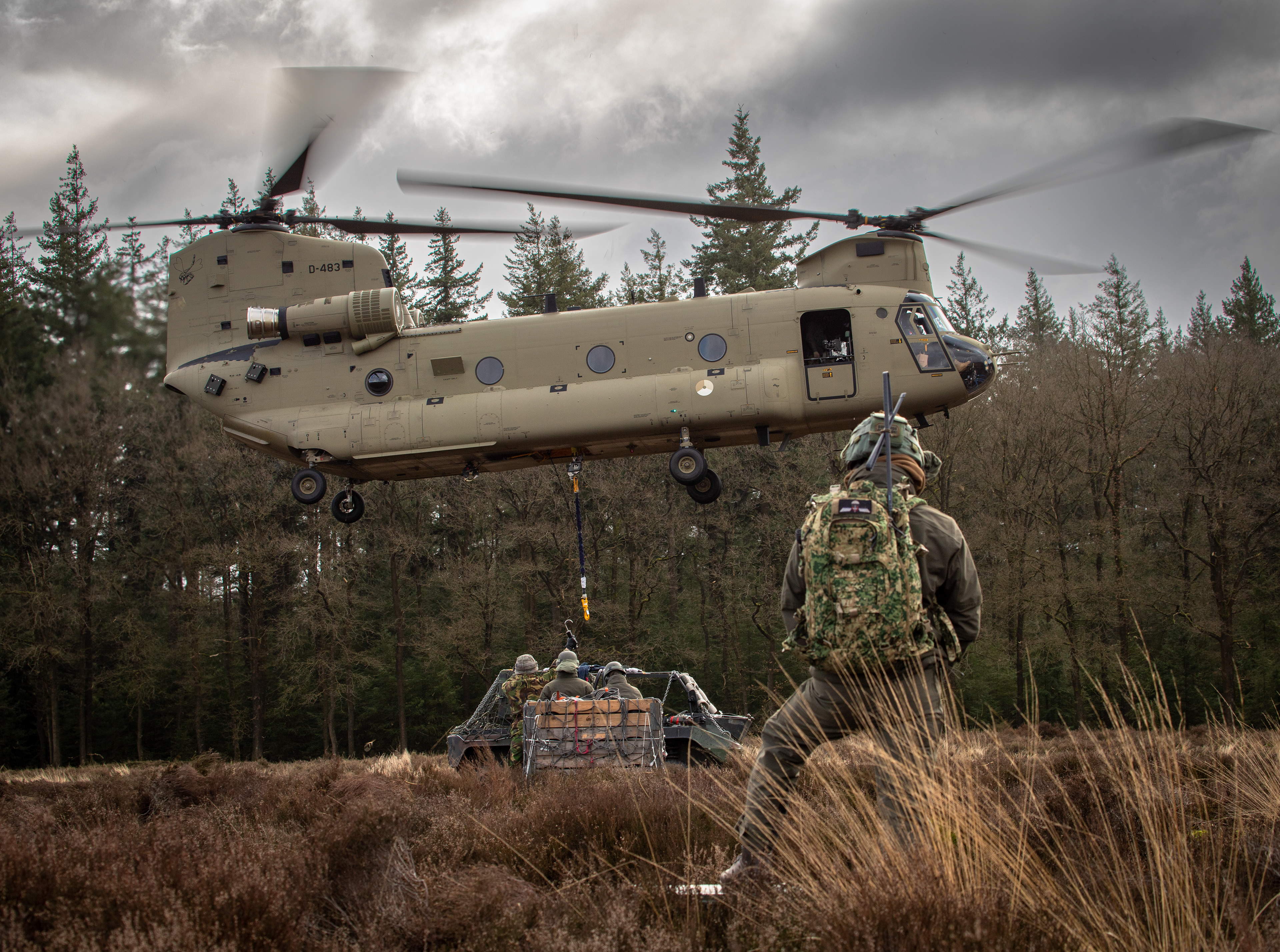 De CH-47 Chinook (type D en F) is een middelzware transporthelikopter. De helikopter met de karakteristieke tandemrotor is uitermate geschikt voor het snel vervoeren van grondtroepen, materieel, wapens, proviand en andere voorraden naar het slagveld. Het toestel staat inmiddels wereldwijd bekend als multifunctioneel militair werkpaard.
