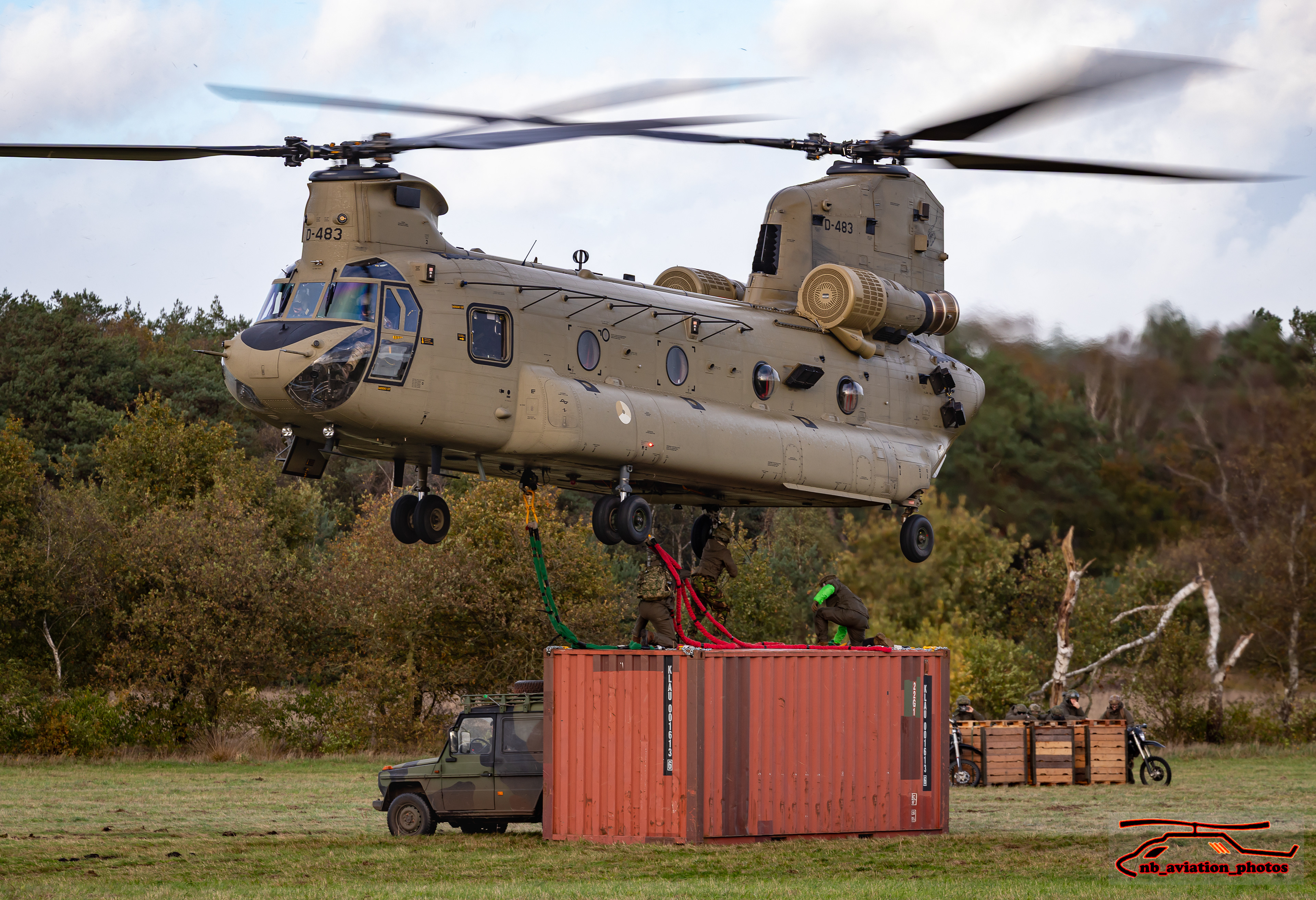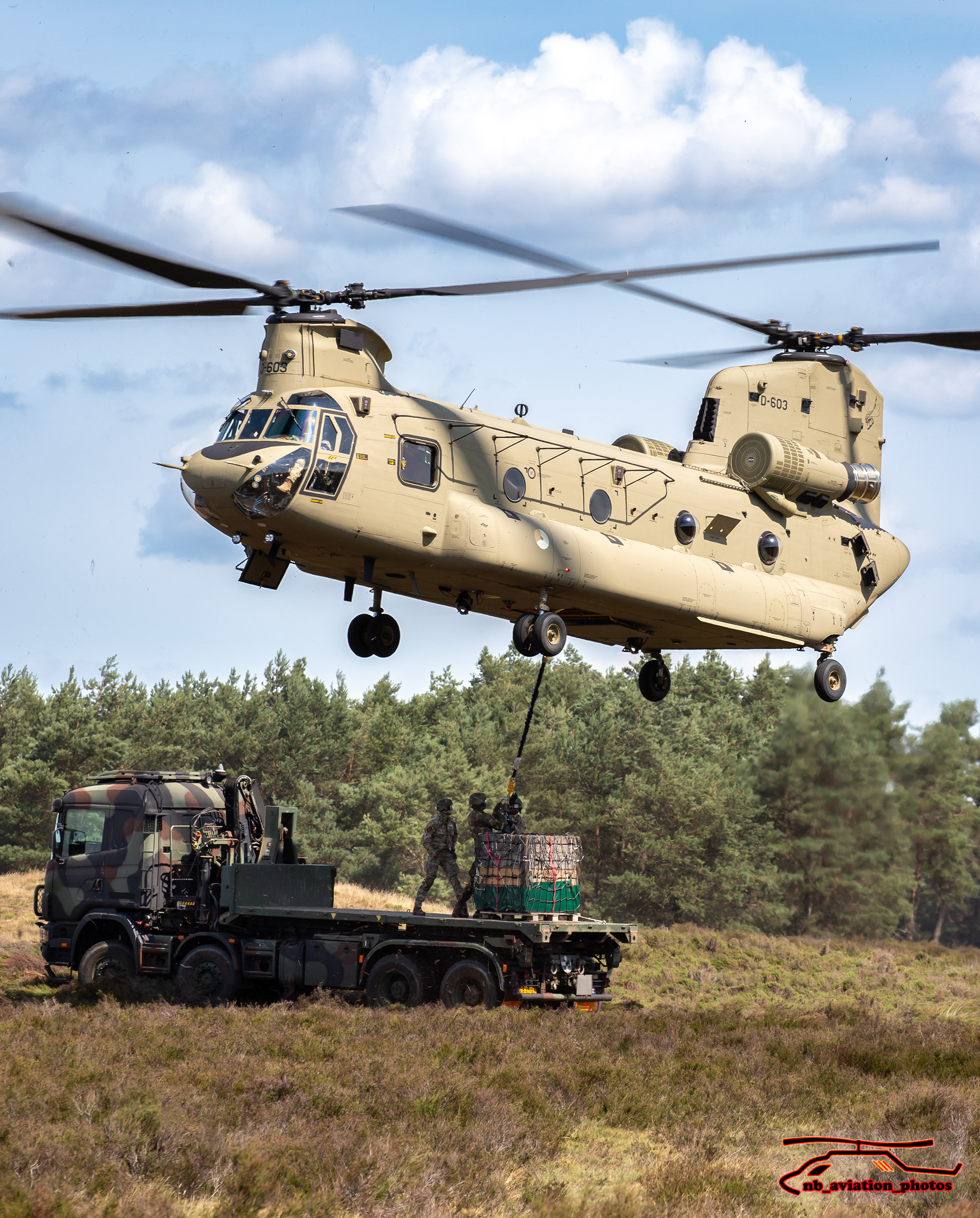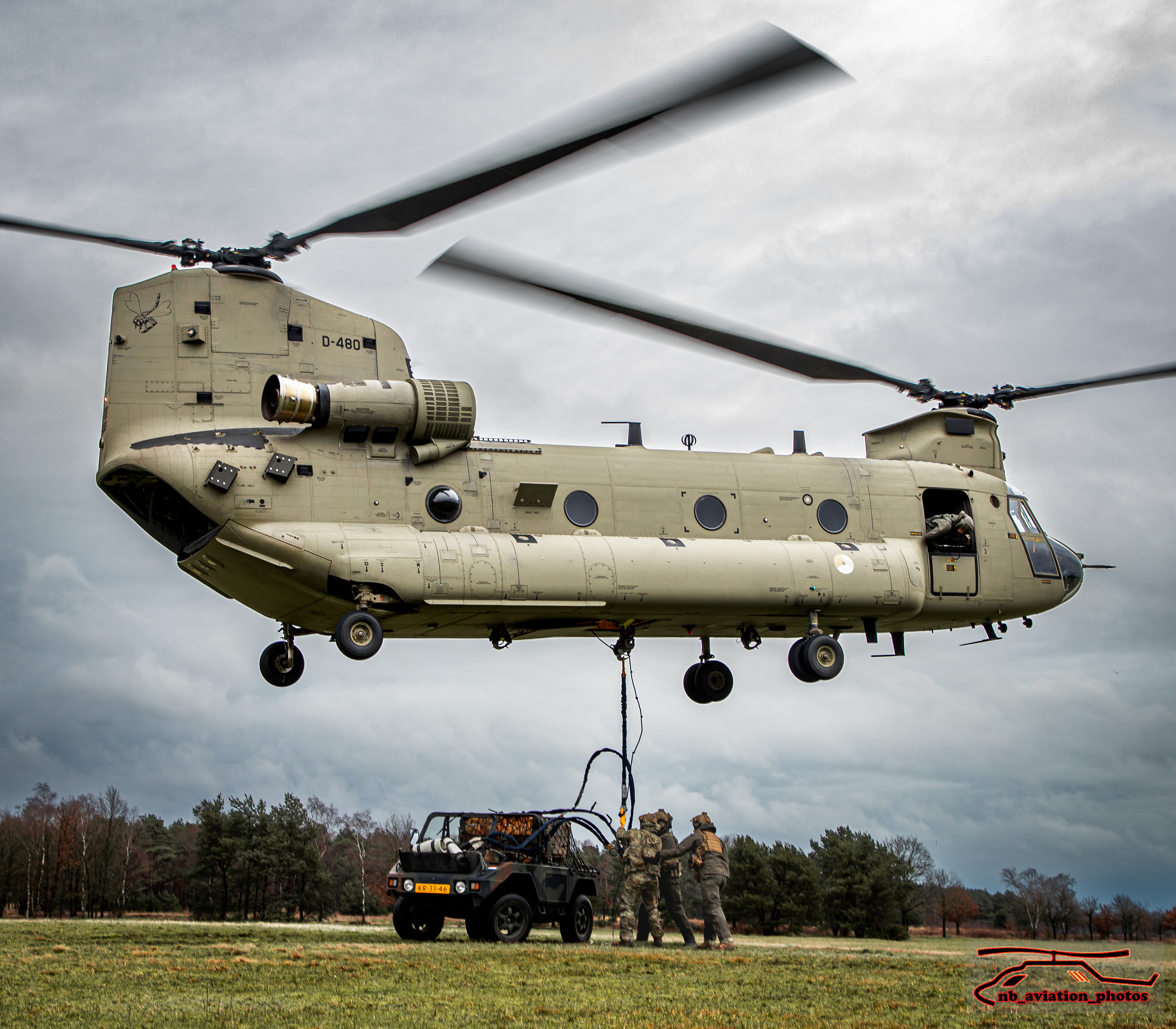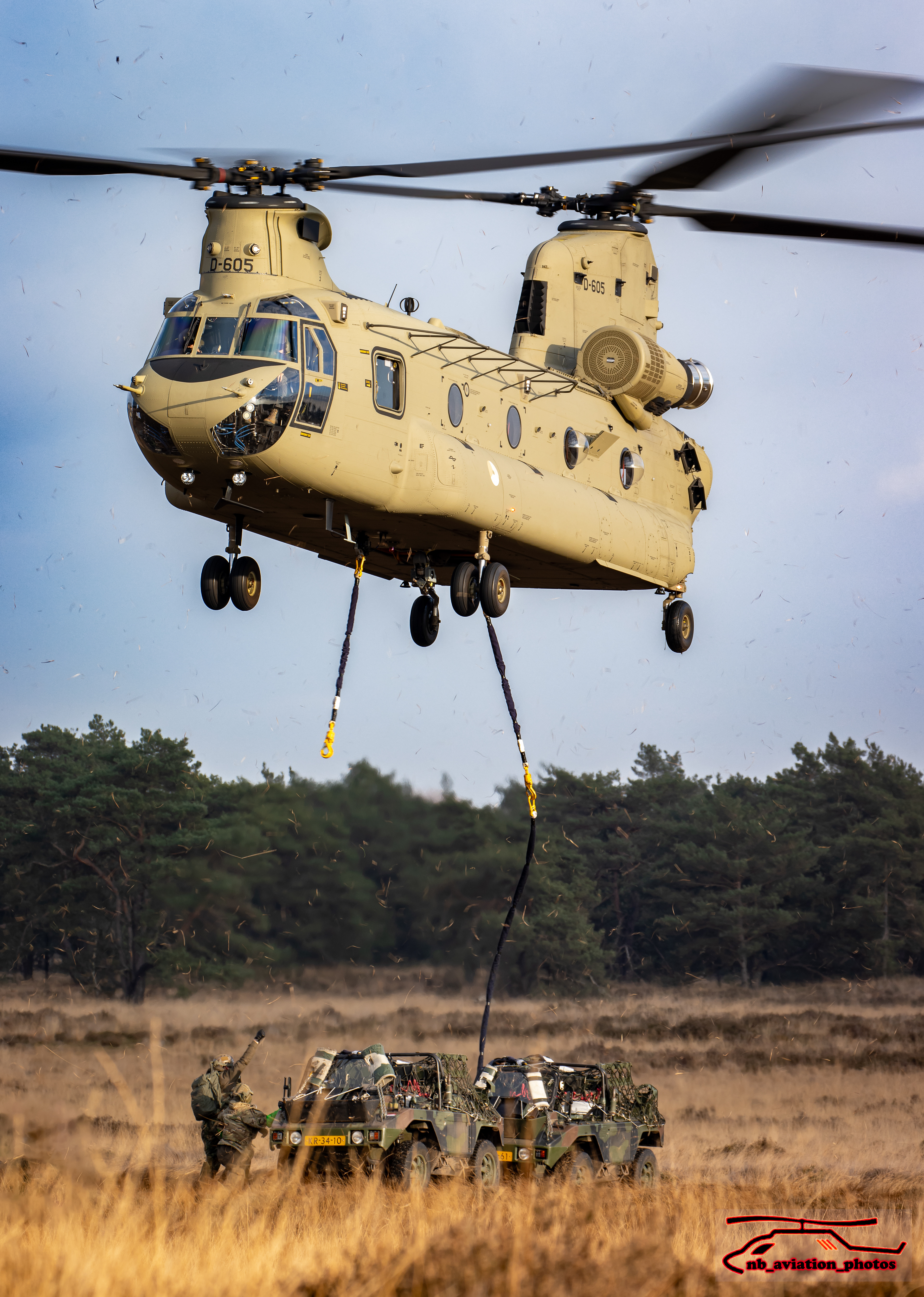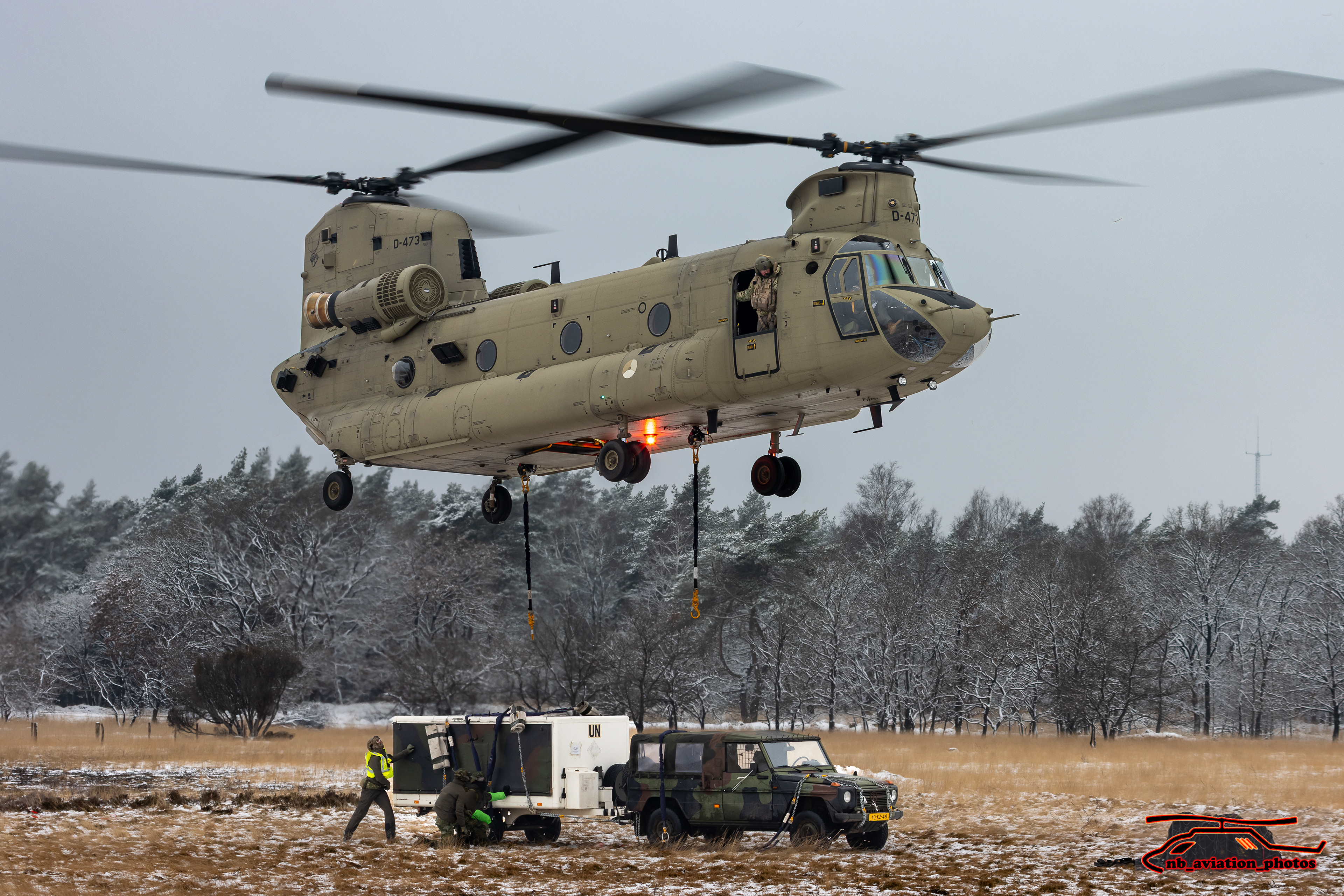 De CH-47 Chinook (type D en F) is een middelzware transporthelikopter. De helikopter met de karakteristieke tandemrotor is uitermate geschikt voor het snel vervoeren van grondtroepen, materieel, wapens, proviand en andere voorraden naar het slagveld. Het toestel staat inmiddels wereldwijd bekend als multifunctioneel militair werkpaard.